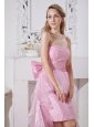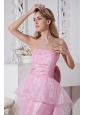 Baby Pink Column Strapless Prom / Homecoming Dress High-low Taffeta and Organza Beading
