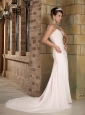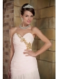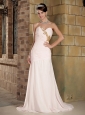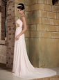 Baby Pink Column Sweetheart Brush Train Lace and Chiffon Beading Prom Dress