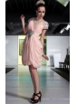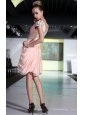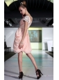 Baby Pink Column V-neck Mini-length Chiffon Beading and Rhinestones Prom Dress
