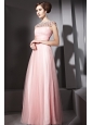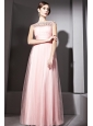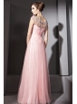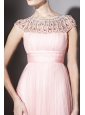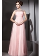Baby Pink Empire Bateau Floor-length Tulle Beading Prom Dress