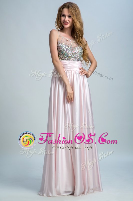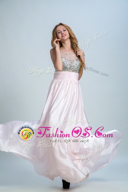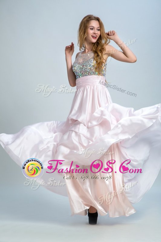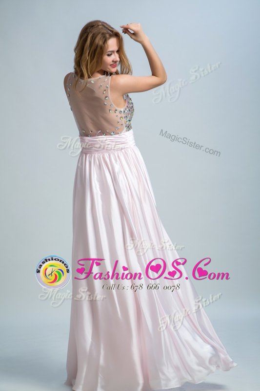 Home >  Prom Dresses >  Fashionable Prom Dresses > Baby Pink Empire Bateau Sleeveless Chiffon Floor Length Side Zipper Beading and Ruching