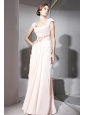 Baby Pink Empire Off The Shoulder Floor-length Chiffon Beading and Ruch Prom / Celebrity Dress