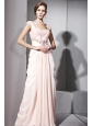Home >  Evening Dresses > Baby Pink Empire Off The Shoulder Floor-length Chiffon Beading and Ruch Prom / Celebrity Dress