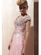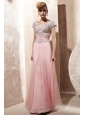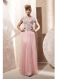 Baby Pink Empire Off The Shoulder Floor-length Tulle Appliques Prom / Celebrity Dress