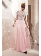 Home >  Evening Dresses > Baby Pink Empire Off The Shoulder Floor-length Tulle Appliques Prom / Celebrity Dress