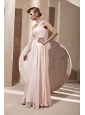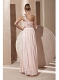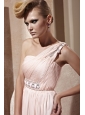 Baby Pink Empire One Shoulder Floor-length Chiffon Beading and Ruch Prom / Celebrity Dress