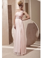 Home >  Prom Dresses >  Discount Prom Dresses > Baby Pink Empire One Shoulder Floor-length Chiffon Beading and Ruch Prom / Celebrity Dress
