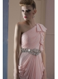 Home >  Prom Dresses >  Discount Prom Dresses > Baby Pink Empire One Shoulder Floor-length Chiffon Beading and Ruch Prom / Celebrity Dress