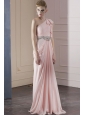 Baby Pink Empire One Shoulder Floor-length Chiffon Beading and Ruch Prom / Celebrity Dress