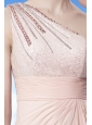 Baby Pink Empire One Shoulder Floor-length Chiffon Beading Prom Dress