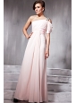 Baby Pink Empire One Shoulder Floor-length Chiffon Beading Prom Dress