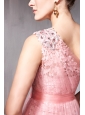 Baby Pink Empire One Shoulder Floor-length Tulle Lace and Beading Prom/Pageant Dress