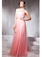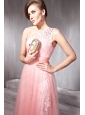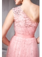 Home >  Prom Dresses >  Discount Prom Dresses > Baby Pink Empire One Shoulder Floor-length Tulle Lace and Beading Prom/Pageant Dress