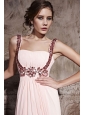 Baby Pink Empire Square Floor-length Chiffon Beading Prom Dress