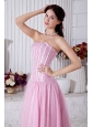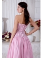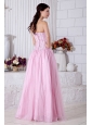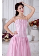 Baby Pink Empire Strapless Prom Dress Tulle Beading Floor-length