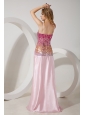 Baby Pink Empire Straps Brush Train Stretch Charmeuse and Sequin Prom / Evening Dress