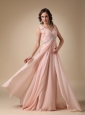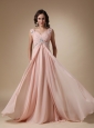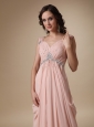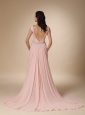 Baby Pink Empire Straps Court Train Chiffon Beading Prom / Evening Dress
