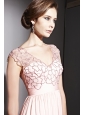 Baby Pink Empire V-neck Floor-length Chiffon Beading and Ruch Prom / Celebrity Dress