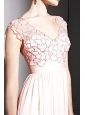 This stunning champagne prom dress is made from two different fabrics:chiffon and net.The fitted bodice features a sweetheart neckline while a outer layer is adorned with exquisite net material shows the beauty of your skin.The ruchings both in the waist section and the skirt conture your natural waistline and slim figure.What are you waiting for? Bring it to your home,now!