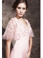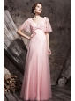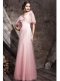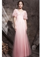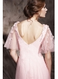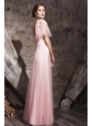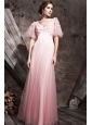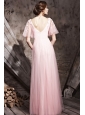 Baby Pink Empire V-neck Floor-length Tulle Appliques and Ruch Prom / Celebrity Dress