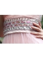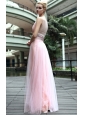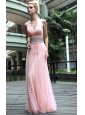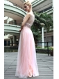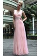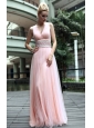 Baby Pink Empire V-neck Floor-length Tulle Rhinestone Prom Dress