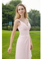 Baby Pink Empire V-neck Mini-length Chiffon Ruch Bridesmaid Dress