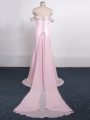 Home >  Evening Dresses > Baby Pink Formal Evening Gowns Prom and Party and Sweet 16 with Beading Off The Shoulder Sleeveless Watteau Train Zipper