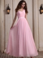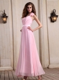 Baby Pink One Shoulder Chiffon Long Dama Dress