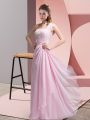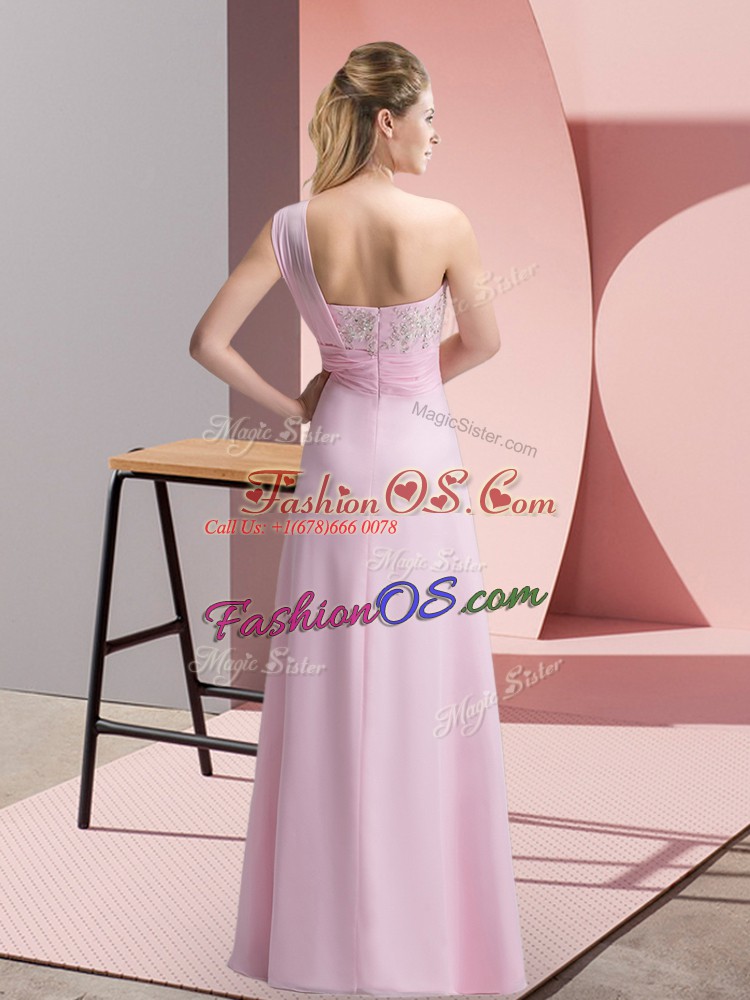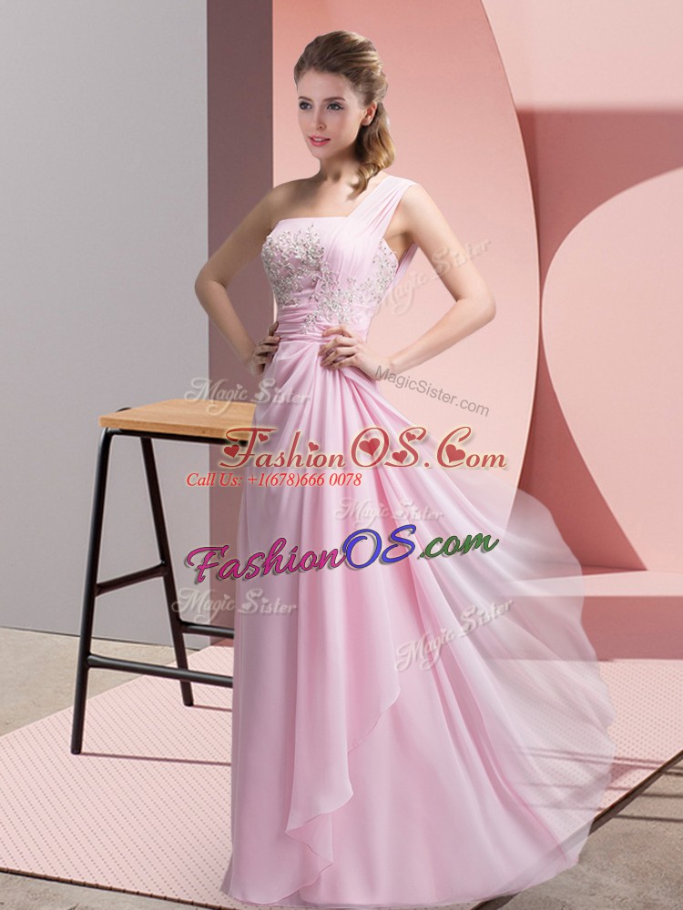 Baby Pink One Shoulder Neckline Beading and Appliques Prom Gown Sleeveless Zipper