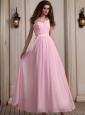 The straightline is wraped by one asymmetrical strap with a hand made flower accents. A narrow waistband curves a slim waistline and shows your figure greatly with wrap texture brights up your bust. The floor length skirt made of romantic chiffon lets you glide across the dance floor with ease. The clear pleats on the skirt add the fine look of the dress. A zipper up back finishes the look.