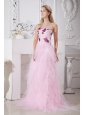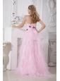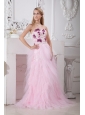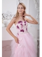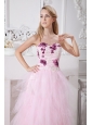 Baby Pink Prom Dress A-line Sweetheart Brush Train Taffeta and Tulle Appliques