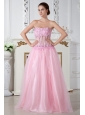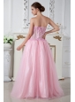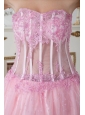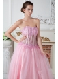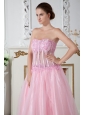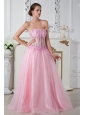 Baby Pink Prom Dress Column Strapless Appliques Brush Train Tulle