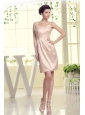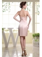 Baby Pink Prom Dress With Spaghetti Straps and Ruch Mini-length