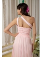 Be the center of attention at any formal occasion including prom in this breathtaking pink evening gown. It features an one-shoulder asymmetrical neckline, pleated bodice and elegant floor-length skirt. The heavily ruched bodice is accented with dazzling embellishments that is sure to sparkle. The floor-length skirt is slightly pleated and flows freely to the floor. A hidden zipper at the side and a half open back completes the perfect design. This gorgeous evening gown is only for the girl who wants to be noticed the moment she arrives.