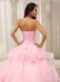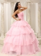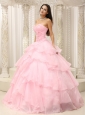 Baby Pink Ruched Bodice Hand Made Flowers Decorate Waist For Quinceanera Dress