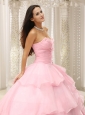 Every girl should have a pink dress at what point of time.This dreamlike pink dress features a strapless sweetheart with several gorgeous floral rosette embellishments along the chest and the left side of the bidice.Layers of skirt lets it more sweet and lovely,making you look very pretty,it moves and sways beautifully when you walk.A great gown for any event or occasion.