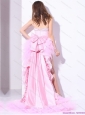 Baby Pink Ruffled One Shoulder High Low Prom Dresses with Hand Made Flower and Beading
