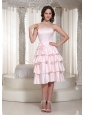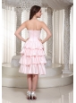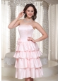 Baby Pink Ruffles Layered Tea-length Dama Dress 2013