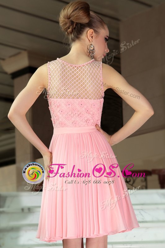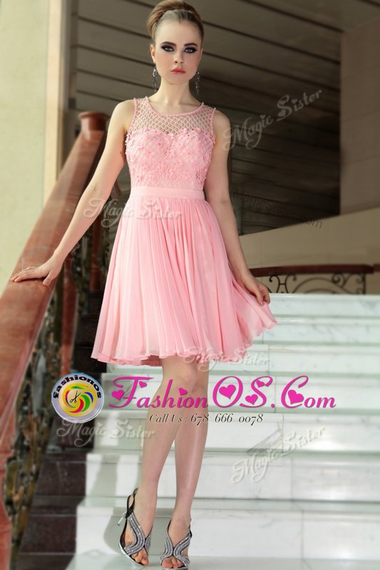 Baby Pink Scoop Side Zipper Pleated Dress for Prom Sleeveless