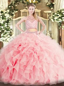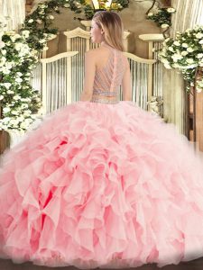 Baby Pink Scoop Zipper Beading and Ruffles 15 Quinceanera Dress Sleeveless