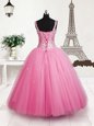 Baby Pink Sleeveless Beading and Sequins Floor Length Child Pageant Dress