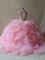 Baby Pink Sleeveless Brush Train Beading and Ruffles Vestidos de Quinceanera