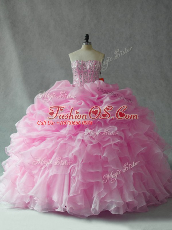 Baby Pink Sleeveless Organza Brush Train Lace Up Sweet 16 Dress for Sweet 16 and Quinceanera