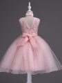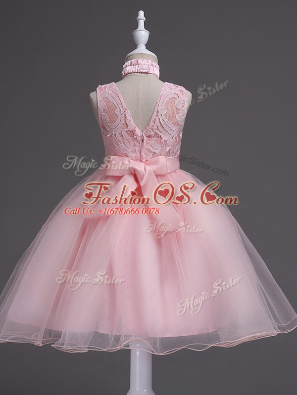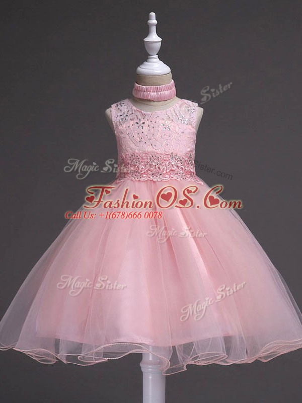 Baby Pink Sleeveless Tulle Zipper Kids Pageant Dress for Wedding Party