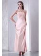 Baby Pink Strapless Column Ankle-length Prom Dress with Appliques