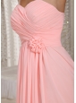Baby Pink Stylish Bridesmaid Dress Ruched Bodice Chiffon For Wedding Party