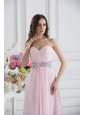 Baby Pink Sweetheart Empire Prom Dress with Ruching and Beading