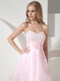 Baby Pink Sweetheart Neckline With Beaded Decorate Organza Princess Prom Dress