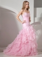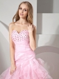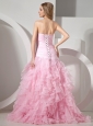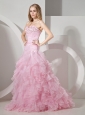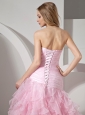 Baby Pink Sweetheart Neckline With Rhinestones and Ruffles Decorate Prom Dress