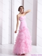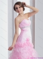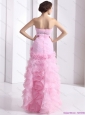 Baby Pink Sweetheart Ruching Beach Wedding Dresses with Ruffles and Beading